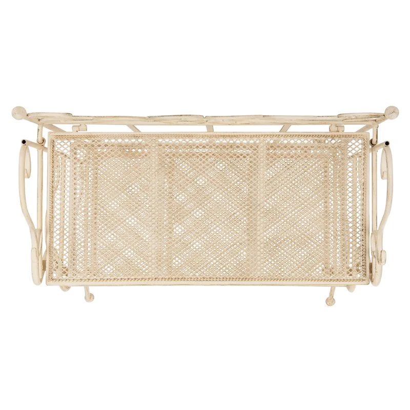Bring charm and character to any outdoor room or garden with this beautiful Torus Shelf. Designed with elegant iron scrollwork in a pearl white finish, Torus’s three generous tiers provide ample space for stylish storage.