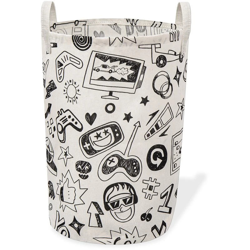 This laundry storage is ideal for transporting clothing and other items while adding a touch of fun to your kids room! It is versatile, collapsible, compact and eye-catching. The round laundry bin fits easily into small areas and features 2 built-in sturdy handles. Perfect to add to any decor!