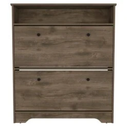 FM FURNITURE Brandford 2-Shelf Engineered Wood Shoe Rack In Dark Brown