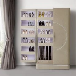 Michael Amini Eclipse Poplar Wood Footwear Cabinet In Moonlight Beige
