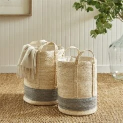 Napa Home & Garden Quinn Corn Husk Round Laundry Basket Natural/Gray (Set Of 2)