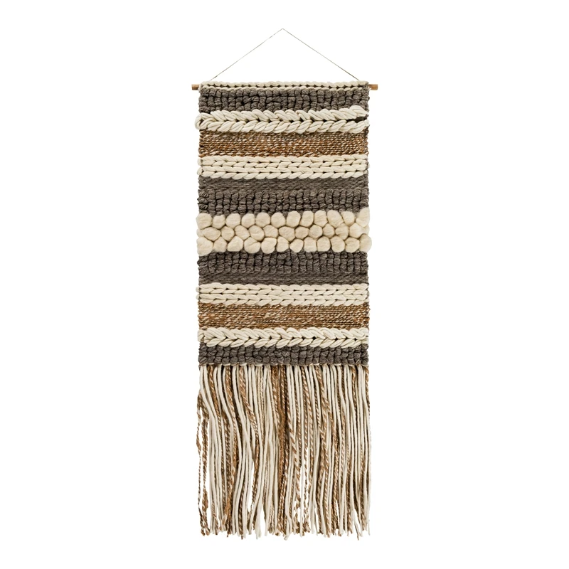 - Materials: Fabric (40% viscose, 40% wool, 20% jute), wood