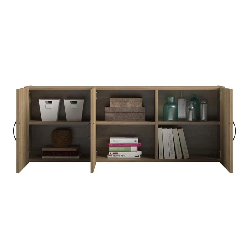 Convert unused wall space into storage with the SystemBuild Lonn 54” Wall Cabinet. Made of laminated MDF and particleboard, the black finish pairs with any décor so the Cabinet can be used anywhere. Use the concealed storage of the Wall Cabinet for laundry essentials and cleaning supplies. The interior of each of the 3 Cabinets features 1 adjustable and 1 fixed shelf. The EZ Hang system makes hanging the Wall Cabinet quick and easy. Simply attach and level the support bar on the wall and hook the Wall Cabinet on for a sturdy and level hang on the first try. Use this piece as a stand-alone item, or combine it with additional SystemBuild Lonn storage items to create the perfect storage solution for your home. The Wall Cabinet ships flat to your door and requires assembly. Two adults are recommended to assemble. Once assembled, the Wall Cabinet measures to be 20.31”H x 54”W x 12.44”D.