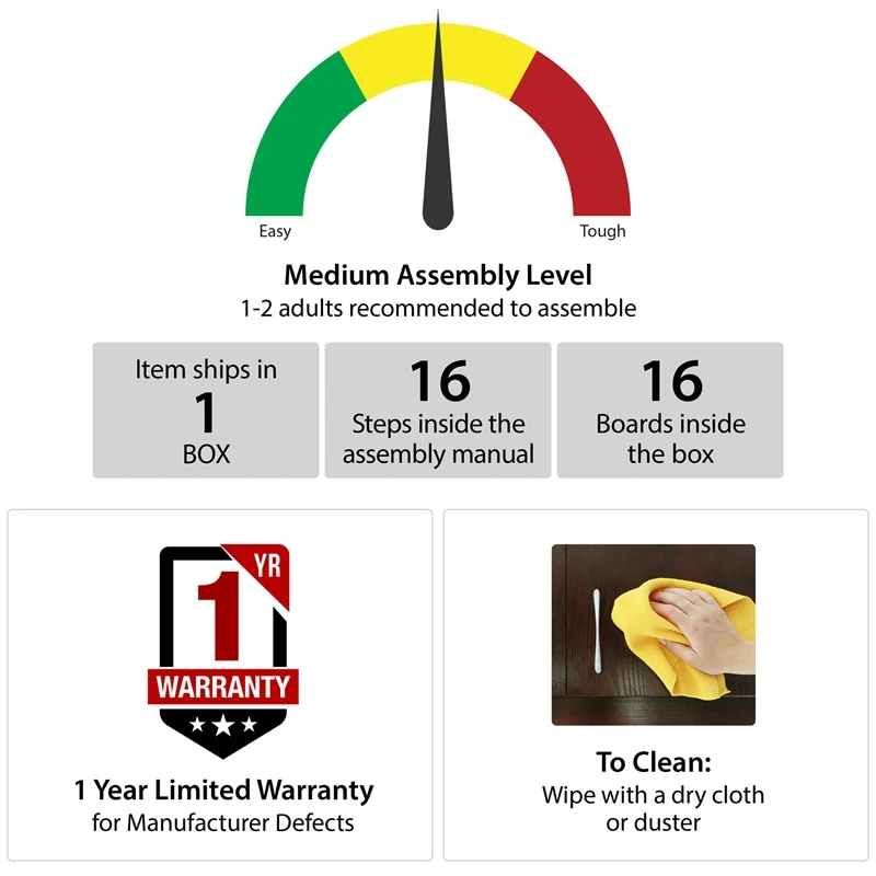 - Made of laminated MDF and particleboard, the black finish can be easily be added to any style and decor