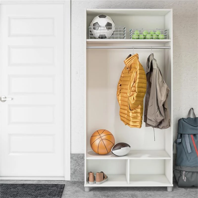- The SystemBuild Lory 36” Wide Mudroom Cabinet adds much needed storage to any room