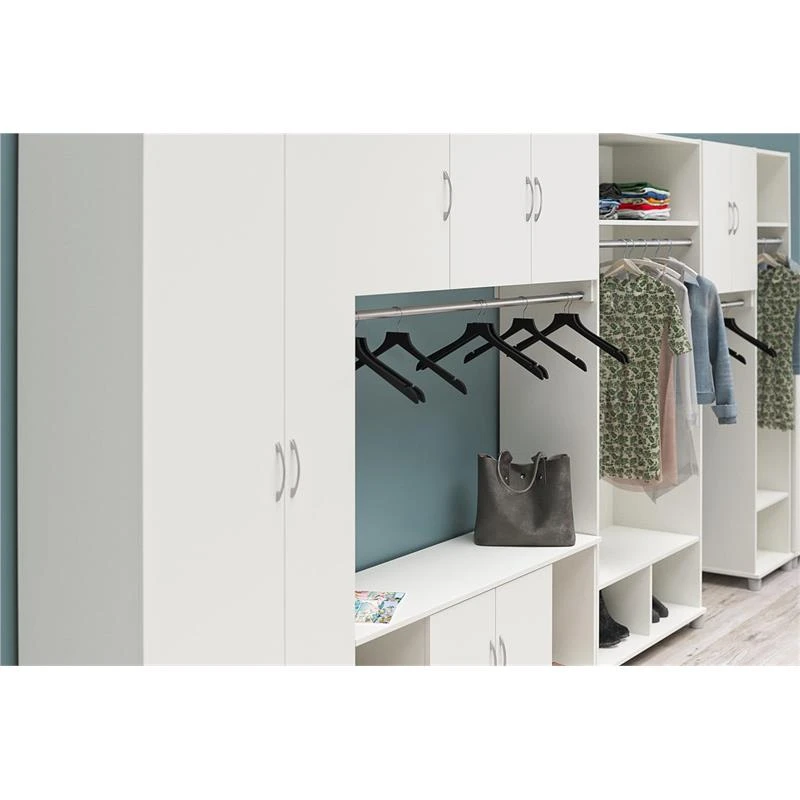 Get organized from the moment you walk in the door with the Lory 36″ Mudroom Cabinet by SystemBuild. Made of laminated particleboard in a neutral finish, the Lory Mudroom Cabinet is both attractive and affordable. The interior of this Cabinet features 2 lower cubbies for shoes or bins, a lower shelf perfect for backpacks or purses, a coat rack, and an upper shelf for hats, gloves and other essentials. Perfect for back to school to keep coats and backpacks in one place for a smooth, no fuss morning routine. Limited space? The Lory Mudroom Cabinet works great in the garage or basement as well. With adjustable feet, keeping your Cabinet level on uneven floors is simple. A wall anchor kit is included to secure the Cabinet to the wall and prevent tipping injuries. Use this piece as a stand-alone item, or combine it with additional SystemBuild Lory items to create the perfect storage solution for every area of your home. The Wide Mudroom Cabinet ships flat to your door and 2 adults are recommended to assemble. Once assembled, the Cabinet measures to be 74.25” H x 36” W x 15.4” D.