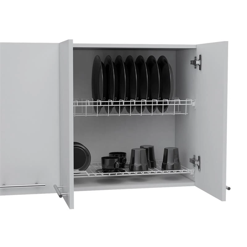 A metal dish rack (10 dishes capacity) and a metal rack for small plates, mugs, and glasses are included.