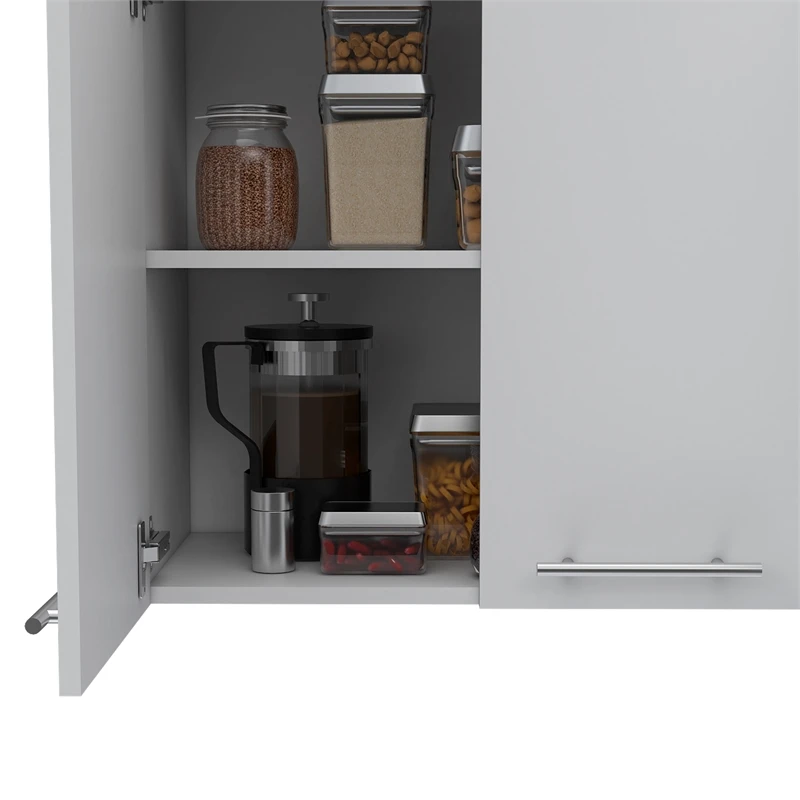 Interior shelves on each cabinet provide you a split space to store items of different sizes.