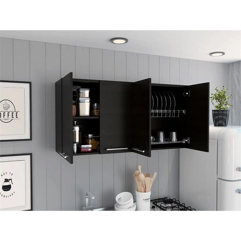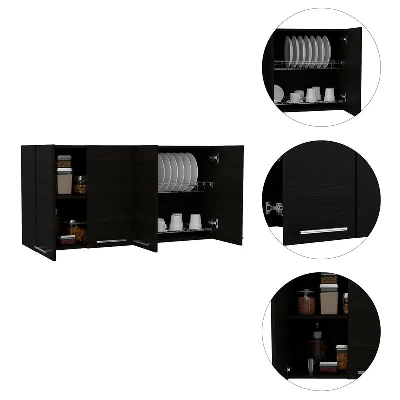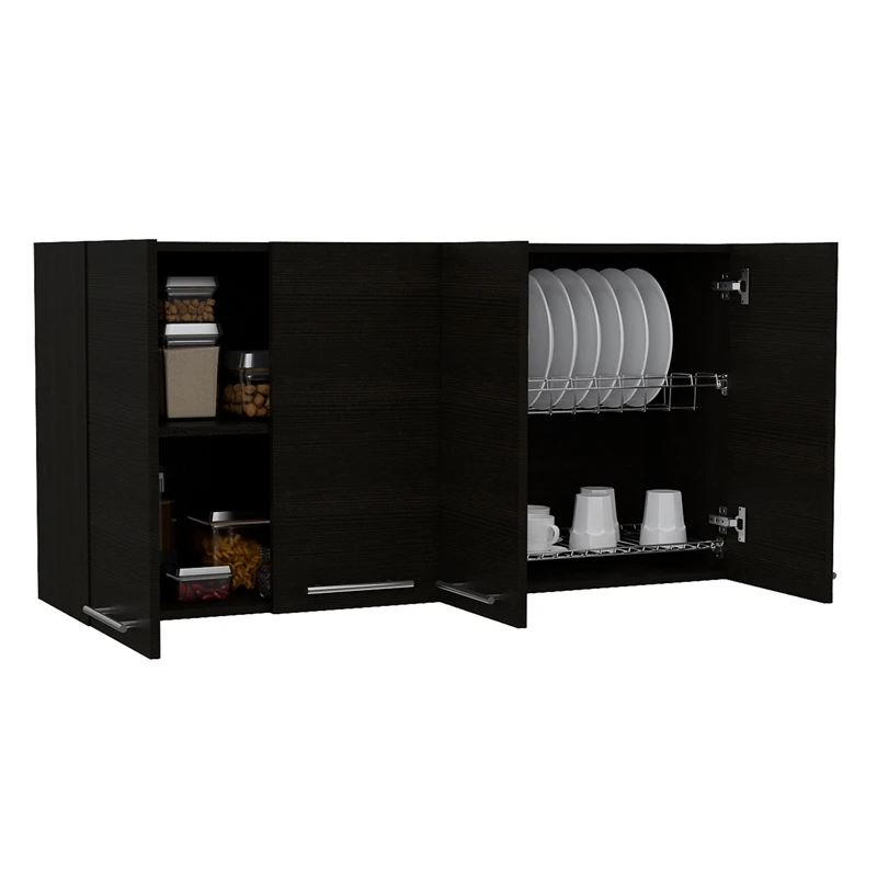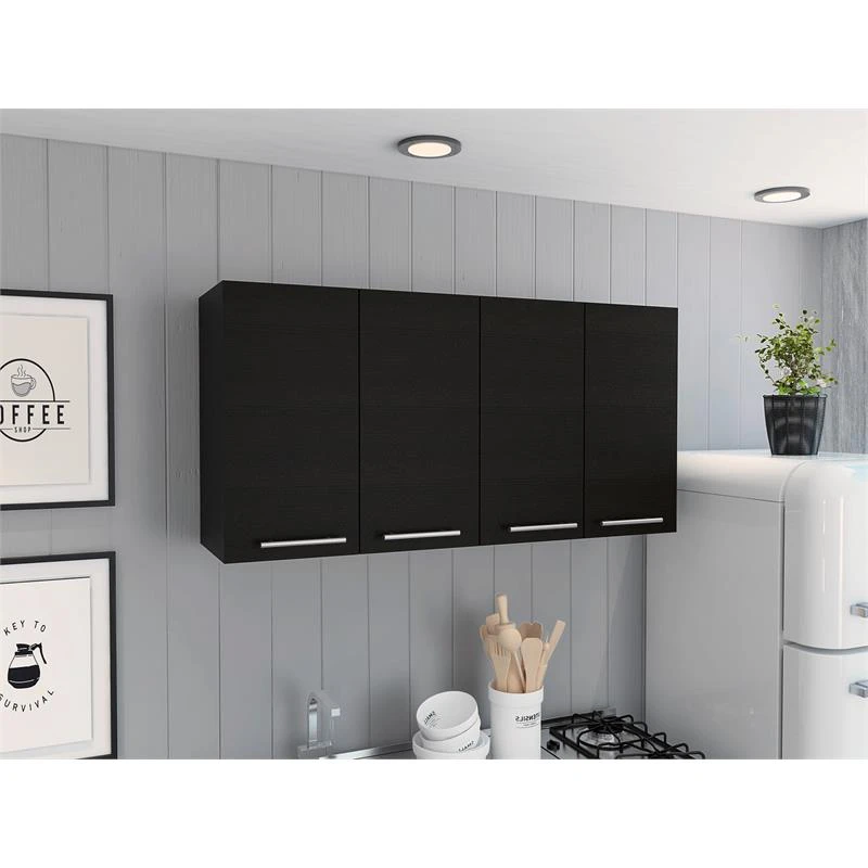 The TuHome Black Modern Engineered Wood 120 Four-Door Wall Cabinet will give you that extra storage space that you need in your kitchen, garage, or mudroom.