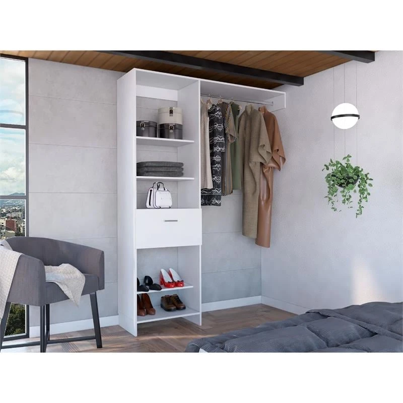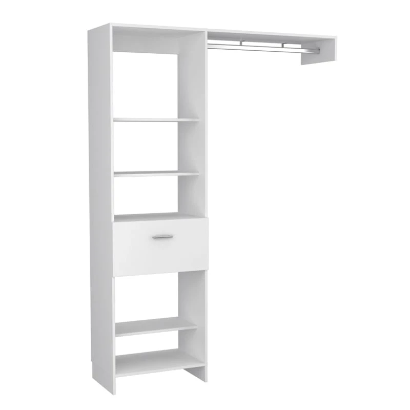 With its ingenious system, you can store your favorite clothes with five shelf applications, a drawer(20,1”W X 14,1”H), and a metal rod (35,5”)to keep your favorite clothes more organized, the superior-top size (155,6”)