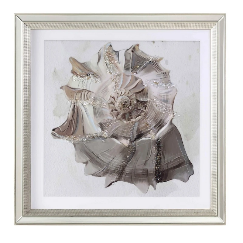Adding this Wall Art not only shows off your taste, it also helps to transform the room into a well crafted ensemble. It features an acrylic mirror trim frame with painted top view of conch a white background. The wall mounting D ring hardware is included to spruce up your bare walls or hang it solo, pair it up or create an entire gallery wall to make a statement.