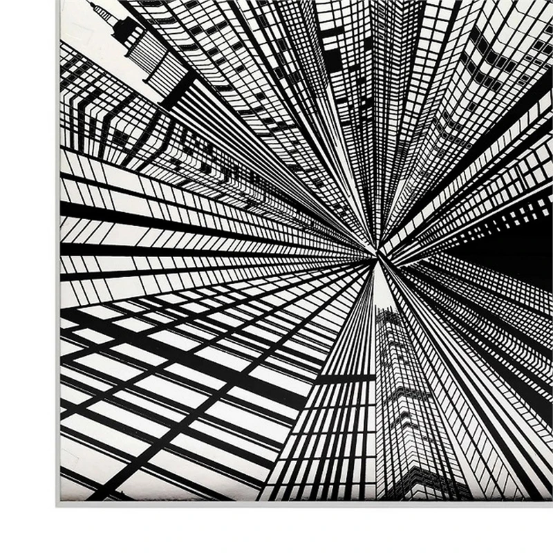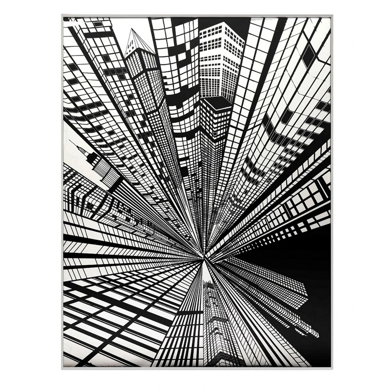 Adding this Wall Art not only shows off your taste, it also helps to transform the room into a well crafted ensemble. It features an aluminum frame with painted top view of multiple buildings on a canvas. The wall mounting D ring hardware is included to spruce up your bare walls or hang it solo, pair it up or create an entire gallery wall to make a statement.