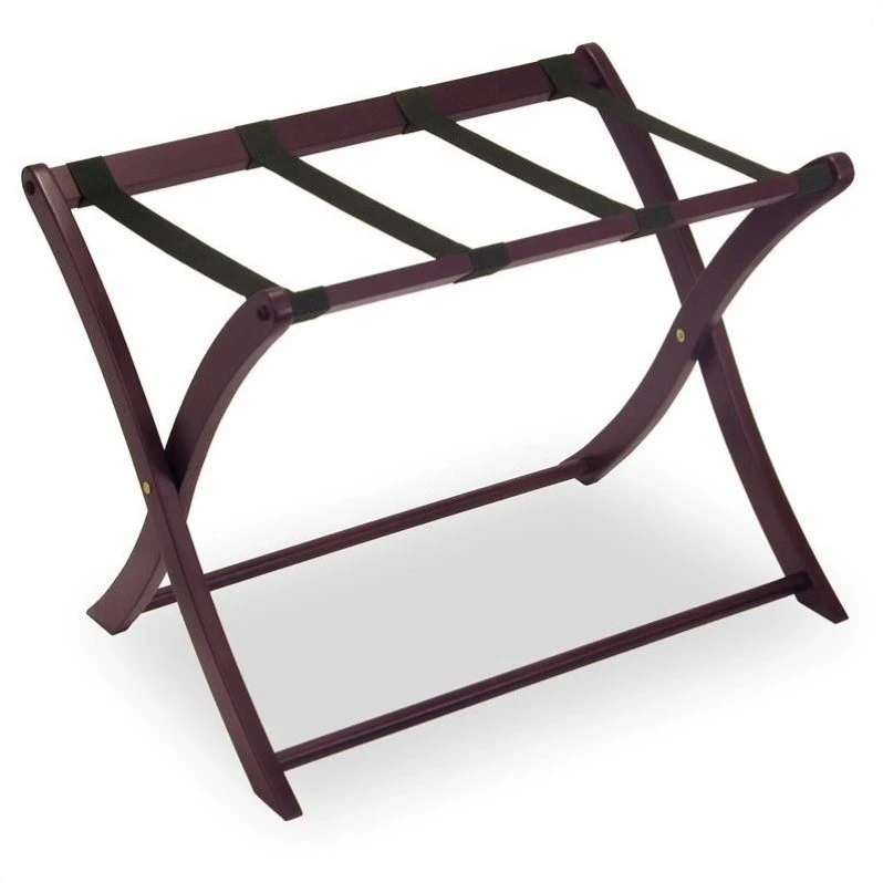 The Winsome Wood Scarlett Luggage Rack is a great addition to your daily living as it offers a convenient place for unwinding from your daily routine. Ideal for the guestroom, for that weekend when the college kids come home as you make your house guest feel welcome with a place to set their bags or luggage and unpack. Help guests feel welcome and keep tidy as this luggage rack helps keep the luggage off the bed and floor. Features gently curved legs that add an appealing look to the design. Made up of remarkably sturdy solid wood for long lasting durability in a warm walnut finish with four thick nylon straps. This rack is sturdy enough to hold a heavy suitcase of up to 75 lbs. The rack folds up easily for storage when not in use, place it in the closet or tuck away under the bed. Conveniently ships in one box, ready to use as no assembly is required.