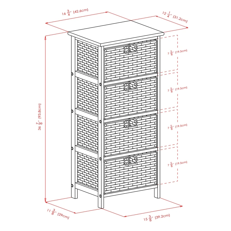 Baskets folded: 23”W x 9.8”D x 1.9”H