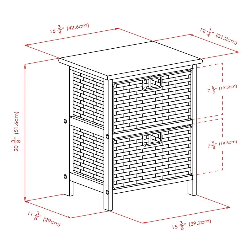 - End Table Dimensions : 16.77″W x 12.28″D x 20.31″H