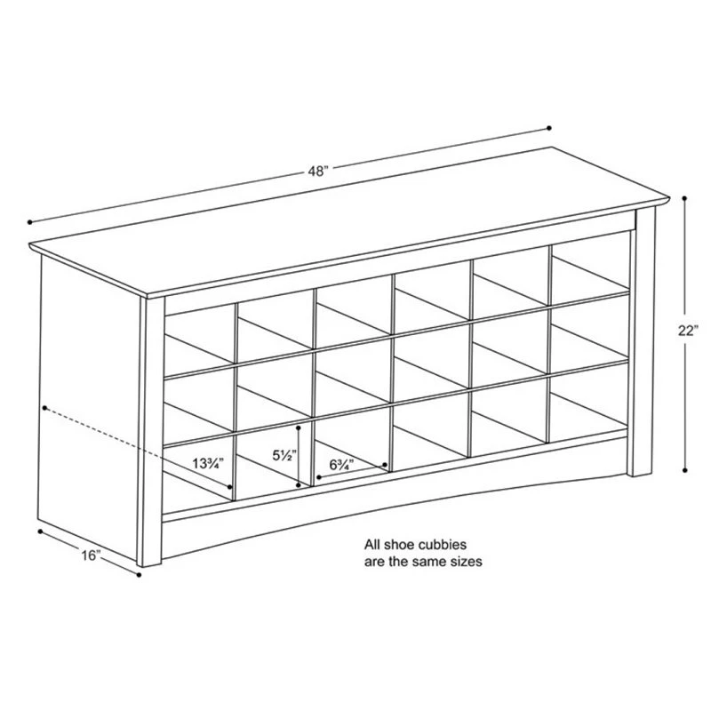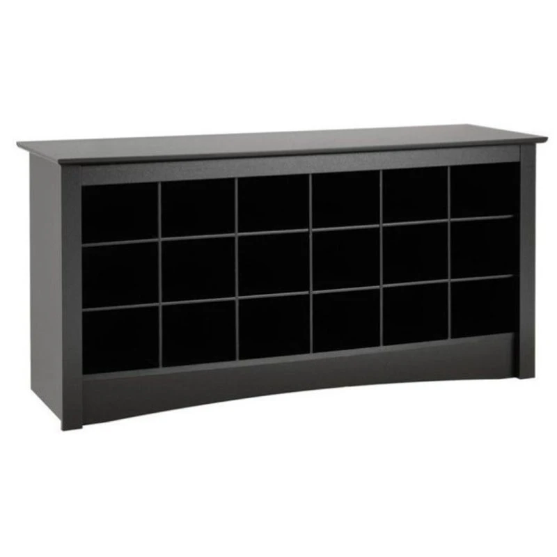 Sit down and slip on your shoes. Doesn’t it make sense to have your shoes stored in the same place as you put them on? This dual purpose product is both stylish and functional, and is a great addition to a front entrance way, mudroom, or utility room. Each of the 18 cubbies measure 6W x 5H x 13D, which make them large enough to hold men’s size 13 shoes! Pair this bench with Wright Home’s Sonoma Black Cubbie Shelf/Wall Coat Rack for added functionality. Some assembly is required.