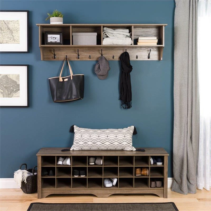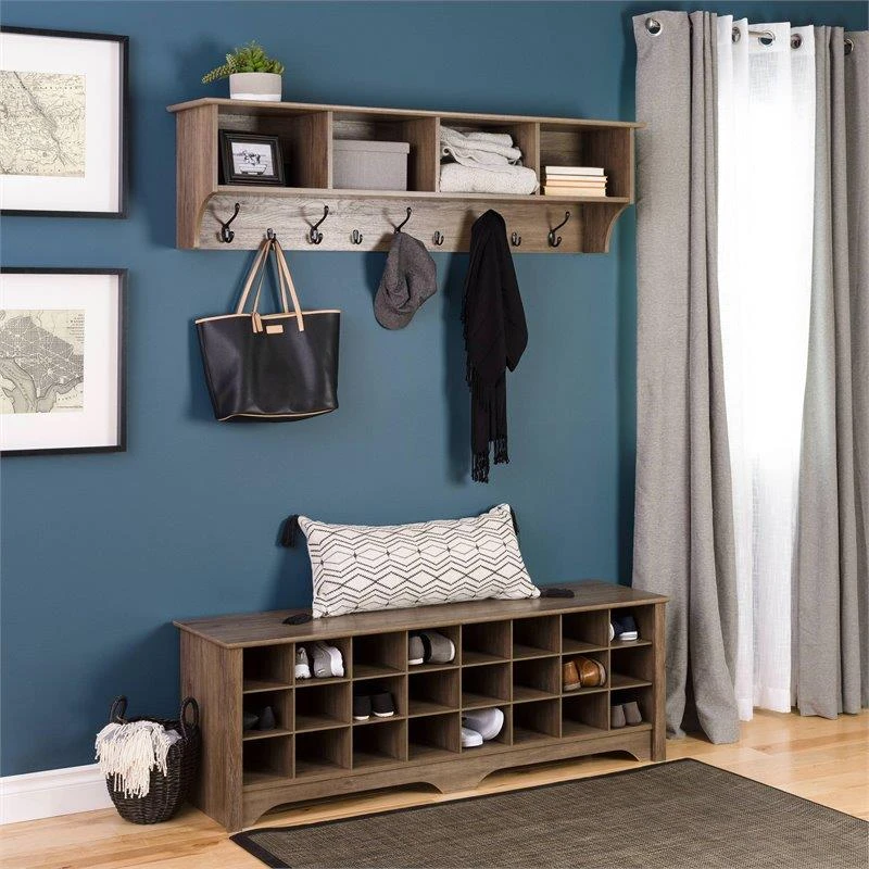 - Pair with Wright Home’s 60″ wide Shelf (DEC-6016) to complete your foyer organization