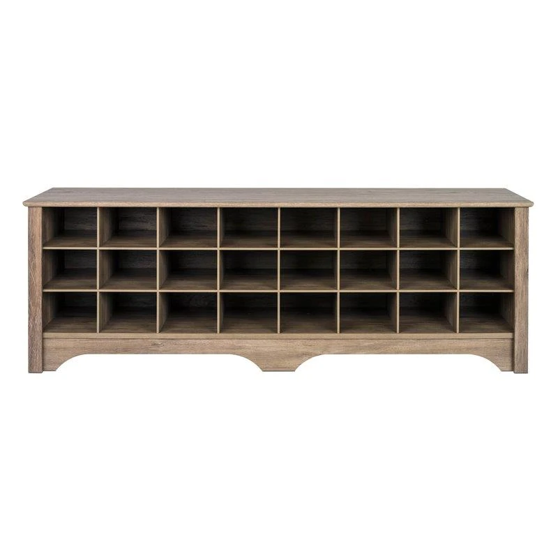 Store your shoes where you put them on with our Shoe Storage Cubbie Bench. Dual-purposed and versatile, this bench is a great addition to your foyer, mudroom, utility room or bedroom. Each of the 24 individual cubbies is spacious enough to hold a pair of size 13 men’s shoes, keeping them neatly stored and out of the way. It’s the perfect piece to keep your shoes organized.
